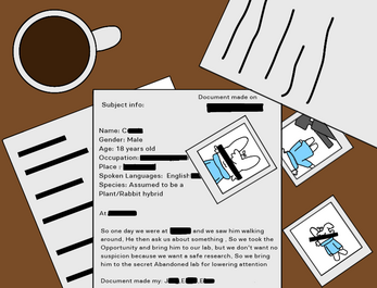 After trying to find a way out, you realized that food and water aren't your concern nor the fact that there are some creatures you don’t know about but the fact they might test on you like a lab rat or a lab rabbit in your case.